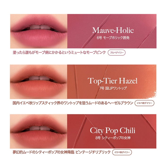 ●ふんわり質感で軽くスルスル濡れるスフレテクスチャーのマットリップ。選べる8色。