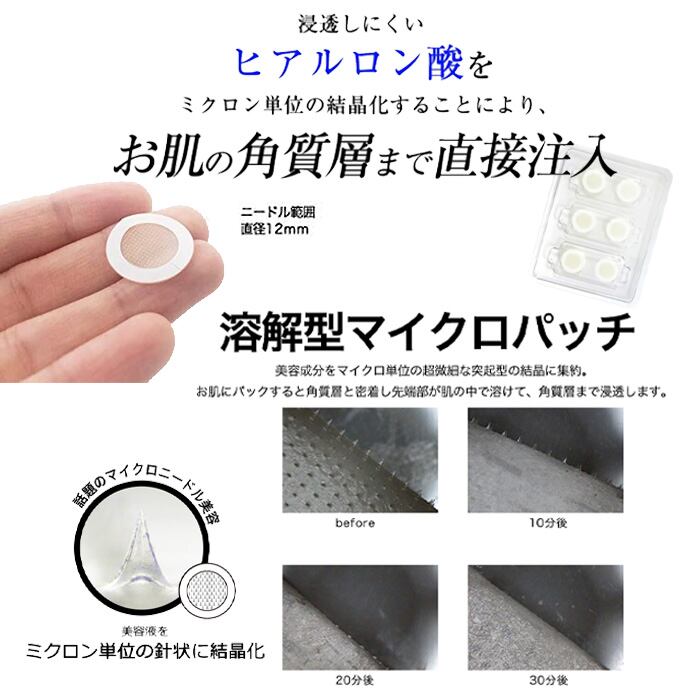 ●【お得な5枚セット】マイクロニードルがヒアルロン酸を奥深くまで届け透明潤い肌にするスポット用のパッチ6枚入り。